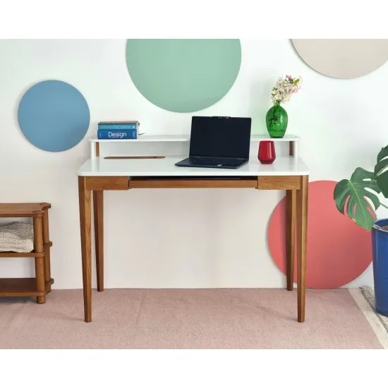 Małe biurko z połką na klawiaturę stworzy wygodne i ergonomiczne miejsce pracy. Dostępne w wielu kolorach.