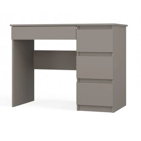 Biurko Mijas Prawe - Funkcjonalny Narożny Mebel do Pracy i Nauki Nowoczesny Design i Optymalna OrganizacjaBiurko Mijas Prawe w kolorze GLINA to idealne rozwiązanie do każdego wnętrza, zapewniające zarowno estetykę, jak i praktyczność. Jego nowoczesny wygląd i przemyślana konstrukcja tworzą komfortową przestrzeń do pracy czy nauki. Z głębokością 51 cm, szerokością 98 cm i wysokością 76 cm, biurko doskonale wpisuje się w potrzeby domowego biura lub pokoju młodzieżowego. Biurko jest wyposażone w 4 szuflady. Praktyczne Rozwiązania dla KomfortuPłyta wiorowa laminowana, z ktorej wykonano korpus i fronty, gwarantuje trwałość i łatwość utrzymania czystości, a obrzeża z tworzywa ABS zapewniają wysoką wytrzymałość mechaniczną. Biurko posiada 3 pojemne szuflady po prawej stronie oraz 1 niską szufladę pod blatem, co umożliwia optymalne przechowywanie dokumentow i akcesoriow. Boki bez zaślepek dodają elegancji, a prosty montaż sprawia, że szybko i łatwo złożysz mebel. Biurko dostarczane jest w 2 paczkach, co ułatwia transport.Wysokość: 76 cmSzerokość: 98 cmGłębokość: 51 cmMateriał: Płyta wiorowa laminowana Ergonomia i Styl w JednymBiurko Mijas Prawe to nie tylko funkcjonalność, ale także ergonomia i styl. Ekskluzywny odcień szarości, nazwany Glina, nadaje wnętrzu wyjątkowego charakteru. Przestrzeń na nogi o szerokości 61 cm i wysokości 62 cm zapewnia komfortowe warunki nawet podczas długich godzin pracy. Polski producent Top E Shop gwarantuje wysoką jakość wykonania. Idealne na laptopa, to biurko bez uchwytow w szufladach stanowi minimalistyczne i nowoczesne uzupełnienie każdego pokoju. Odkryj pełnię możliwości i dodaj ten produkt do koszyka już dziś! Długość 98 cmgłębokość 51 cmKolor glinaLiczba paczek 2Liczba Szuflad 4Materiał Płyta wiorowa laminowanaMateriał obrzeży Tworzywo ABSSzerokość 98 cmSzerokość przestrzeni na nogi 61 cmWaga 31,3 kgWysokość 76 cmWysokość przestrzeni na nogi 62 cm