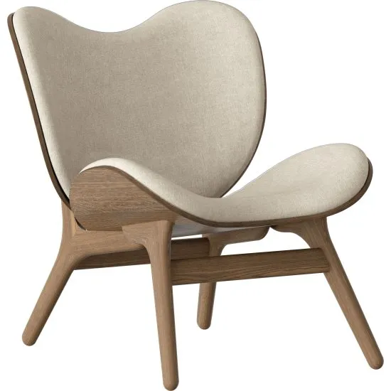 Fotel Conversation Piece jasnopiaskowy na ciemnych dębowych nogach