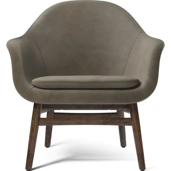 Fotel Harbour szary skorzany na ciemnych dębowych nogach
