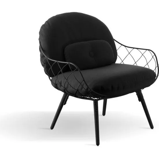 Fotel niski Pina czarne rama i siedzisko, czarne nogi
