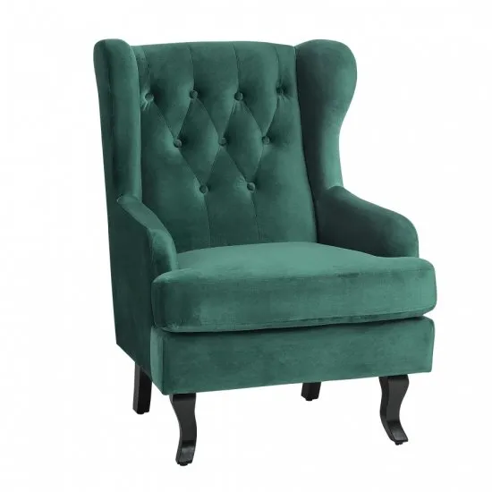 Elegancki Fotel z Weluru - ZielonyDodaj odrobinę luksusu i stylu do swojego wnętrza dzięki naszemu eleganckiemu fotelowi wykonanemu z wysokiej jakości weluru w głębokim, zielonym kolorze. Ten fotel nie tylko zachwyca swoim wyglądem, ale także zapewnia wyjątkowy komfort podczas codziennego użytku. Klasyczny Styl i NowoczesnośćFotel cechuje się delikatnie zaokrąglonymi liniami, ktore nadają mu klasycznego uroku, jednocześnie zachowując nowoczesny design. Jego smukłe, metalowe nogi w złotym kolorze dodają lekkości i elegancji, tworząc harmonijną całość.Wszechstronne ZastosowanieNasz fotel doskonale sprawdzi się w rożnych wnętrzach - od przestronnych salonow, przez przytulne gabinety, aż po stylowe poczekalnie. Jego uniwersalny design pozwala na łatwe dopasowanie do rożnych stylow aranżacji. Maksymalny KomfortMiękki w dotyku welur w połączeniu z ergonomicznym kształtem zapewnia niezrownany komfort. Głębokie siedzisko oraz delikatnie zaokrąglone podłokietniki i oparcie zachęcają do relaksu i wypoczynku w każdej chwili.Solidna KonstrukcjaFotel oparty jest na wytrzymałych, metalowych nogach, ktore nie tylko dodają mu elegancji, ale także gwarantują stabilność i trwałość. To połączenie stylu z funkcjonalnością, ktore spełni oczekiwania nawet najbardziej wymagających użytkownikow. głębokość 78 cmKolor Ciemny zielonyKolor nog ZłotyMateriał WelurMateriał nog MetalSzerokość 72 cmWysokość 100 cm