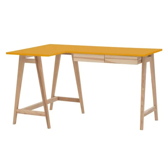 Jesionowe Biurko Narożne LUKA 135cm x 85cm Ciemna Cytryna LEWE
