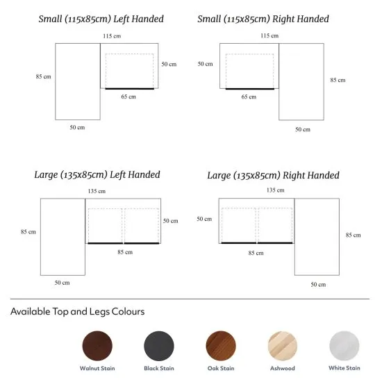 Biurko narożne Luka z szufladą, przestronnym blatem i podnożkiem. Wykonane z drewna jesionowego i forniru z naturalnego drewna jesionowego. Biurko prawe.