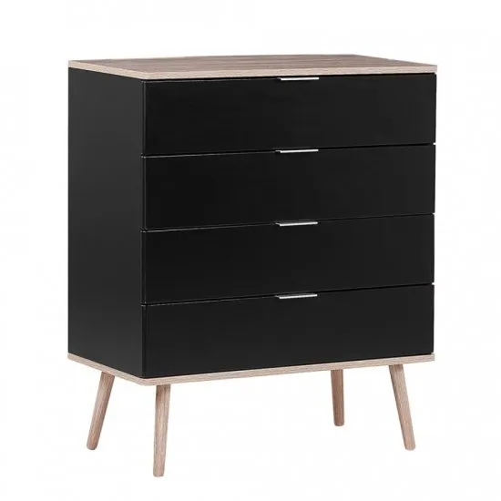 Nowoczesna komoda do salonu.Komoda w stylu nowoczesnym do doskonały wybor dla osob, ktore szukają nie tylko funkcjonalnego mebla, ale rownież stylowego dodatku do swojego wnętrza. Mebel ten doskonale komponuje się we wnętrzach urządzonych w stylu nowoczesnym, minimalistycznym lub loftowym. Czarna komoda do pokoju w nowoczesnym stylu.Ta czarna komoda urzeka swoim eleganckim i minimalistycznym stylem. Wykonana została z wysokiej jakości płyt MDF i płyt wiorowej, co gwarantuje trwałość i solidność. Pomalowana jest na głęboki, czarny kolor, co dodaje jej szyku i klasy. Nowoczesna komoda do salonu posiada troje drzwi, za ktorymi kryją się przestronne połki, idealne do przechowywania rożnych przedmiotow. Wnętrze mebla jest rownie starannie wykończone jak jego zewnętrzna część. Brak uchwytow podkreśla nowoczesny charakter komody, a system push to open umożliwia łatwe otwieranie drzwi.Komoda czarna pełni nie tylko funkcję praktyczną, ale rownież estetyczną w aranżacji wnętrz. Może służyć jako miejsce do przechowywania w salonie, jadalni czy gabinecie. Na jej gornej części można wyeksponować dekoracje, książki lub zdjęcia, dodając wnętrzu przytulności i osobistego charakteru. Stabilna, czarna komoda.Dzięki zastosowaniu solidnych materiałow, komoda jest trwała i łatwa w utrzymaniu czystości. Jej stabilna konstrukcja zapewnia bezpieczeństwo przechowywanych przedmiotow. Komoda czarna utrzymana jest w eleganckim oraz prostym stylu, przez co będzie doskonałym uzupełnieniem każdego nowoczesnego wnętrza. Wyposażona w system push to open, posiada 3 pojemne połki. Jest stabilna i wytrzymała. Wykonana jest z wysokiej jakości płyt MDF oraz płyt wiorowych. Funkcjonalna komoda, niezwykle praktyczna.Ta stabilna komoda jest nie tylko elegancka, ale także niezwykle funkcjonalna. Oferuje dużo miejsca do przechowywania, co pomaga utrzymać porządek w pomieszczeniu. System push to open ułatwia codzienne użytkowanie, a brak uchwytow dodaje lekkości i elegancji. głębokość 40 cmKolor czarnyLiczba drzwi 3Liczba połek 3Materiał Płyta pilśniowa MDFStyl nowoczesnySystem otwierania push to openSzerokość 79 cmUchwyty brakWysokość 93 cm