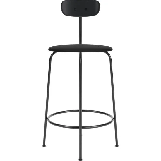 Krzesło barowe Afteroom 92 cm czarne oparcie czarny dąb siedzisko skorzane