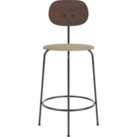 Krzesło barowe Afteroom Plus Bouclé 97 cm beżowe oparcie ciemny dąb z tapicerowanym siedziskiem