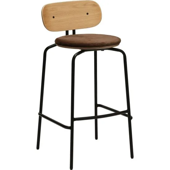 Krzesło barowe Curious Teddy brązowe z tapicerowanym siedziskiem na czarnych nogach