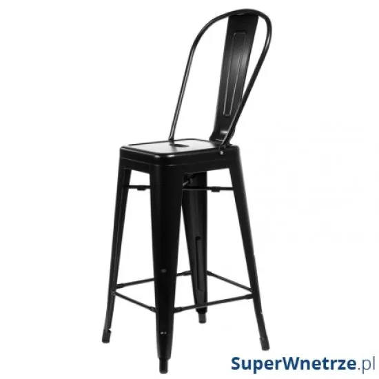 Krzesło barowe, D2, ParisBac, czarne. Krzesło barowe D2 ParisBac czarne. Stołek ParisBack to wyjątkowy mebel, ktory łączy w sobie klasyczny design z nowoczesnymi rozwiązaniami. Inspirowany stylem Tolix, ten metalowy stołek barowy z oparciem zachwyca swoją surowością i industrialnym charakterem. Wykonany w całości z metalu, jest nie tylko wytrzymały, ale także stabilny, dzięki wzmocnieniom pomiędzy nogami. Jego praktyczność idzie w parze z estetyką – na środku siedziska znajduje się otwor ułatwiający przenoszenie, a oparcie zapewnia wygodę podczas siedzenia. ParisBack został przystosowany do wysokich stołow i blatow, co czyni go idealnym wyborem do przestrzeni barowych, kawiarnianych czy loftowych kuchni.Jego industrialny styl doskonale komponuje się z wnętrzami utrzymanymi w surowym klimacie, dodając im wyjątkowego charakteru.Ten stołek barowy to nie tylko mebel, ale także element dekoracyjny, ktory wprowadza do wnętrza niepowtarzalny klimat.Dzięki ParisBack każda chwila spędzona przy wysokim barze staje się pełna stylu i klasy. głębokość 41 cmKolekcja ParisKolor czarnyMateriał metalSzerokość 41 cmWysokość 108 cmWysokość siedziska 66 cm