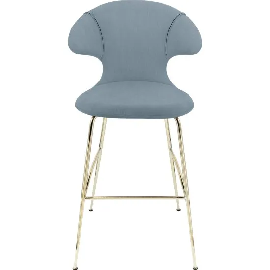 Krzesło barowe Time Flies błękitne na mosiężnych nogach