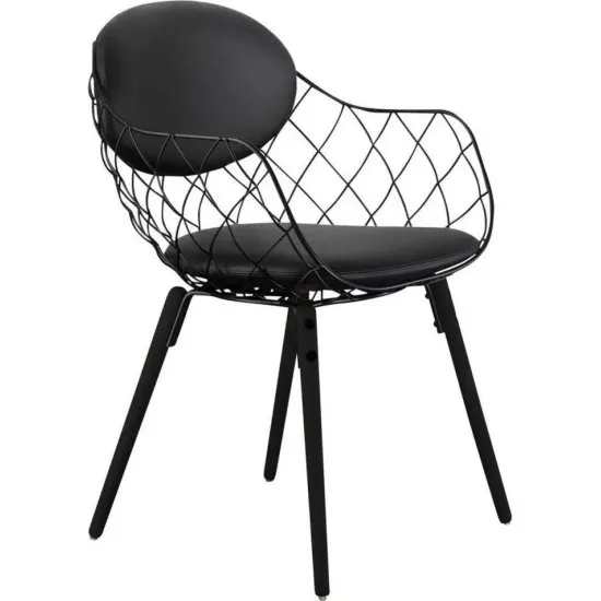 Krzesło Pina czarne materiał skora nogi czarne