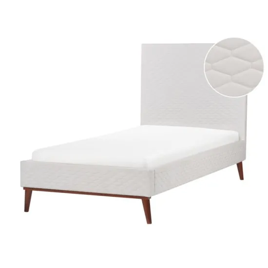 Poszukujesz nowoczesnego, a zarazem wygodnego łożka? Bayonne spełni wszystkie Twoje oczekiwania i dopasuje się do każdego wnętrza, niezależnie od panującego stylu w pomieszczeniu! Szerokie, wyściełane wezgłowie wykonane zostało z wysokiej jakości weluru w kolorze złamanej bieli. Posiada delikatne, prostokątne przeszycia, nadające minimalistyczny klimat. Solidna rama łożka rownież została utrzymana w tej samej tonacji i wykonana z tego samego materiału. Łożko opiera się na czarnych, solidnych metalowych nogach, ktore zapewniają stabilność konstrukcji. Łożko Bayonne wprowadzi do Twojej sypialni niesamowity klimat, zapewniając wygodny sen oraz relaks przy oglądaniu ulubionych seriali. Opis produktu:Nowoczesne jednoosobowe łożko Bayonne o materacu wielkości 90 cm x 200 cm, wyściełane miękkim i wytrzymałym aksamitem w kolorze złamanej bieli.Subtelny, minimalistyczny styl nadają duże wezgłowie z delikatnymi przeszyciami prostokątnymi.Solidna rama, szerokie wezgłowie wykonane z wytrzymałego materiału oraz sporą dawkę przytulności.Mebel nadający się do każdego rodzaju wnętrza i pomieszczenia. Świetnie sprawdzi się w pokoju dziecka, nastolatka a nawet w Twojej sypialni czy pokoju gościnnym.Proste, minimalistyczne nogi wykonane z metalu w kolorze czarnym, wspierające solidną i stabilną konstrukcję łożka. Wymiary:powierzchnia spania: 90 cm x 200 cmwysokość: 121 cmszerokość: 101 cmdługość: 212 cmwysokość nożek: 17 cm Długość 212 cmDługość spania 200 cmKolor Złamana bielMateriał WelurMateriał nog MetalSzerokość 101 cmSzerokość spania 90 cmWysokość 121 cmWysokość nog 17 cm