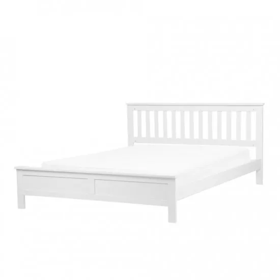 Łożko drewniane 180 x 200 cm.Duże łożko wykonane w minimalistycznym stylu to doskonały element wystroju każdego pokoju, urządzonego w takim duchu. Świetnie pasować będzie także do każdego wnętrza — dobrze dobrane dodatki mogą bowiem całkowicie zmienić jego charakter. Mebel został zrobiony z najwyższej jakości drewna sosnowego i pomalowany na biały kolor ekologicznymi, bezpiecznymi farbami. Jest bardzo stabilny, a klasyczny fason podwyższa dodatkowo ozdobna rama wezgłowia i bokow. Cechy - Łożko drewniane.Kolor: Biały.Wykonanie z drewna sosnowego.Wezgłowie z poziomych bali.Prosty, nowoczesny wygląd.Tradycyjny styl. głębokość 208 cmKolor BiałyMateriał drewno sosnoweSzerokość 189 cmWysokość 88 cm
