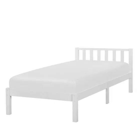 Łożko drewniane 90 x 200 cm białeSzukasz stylowego łożka, ktore wprowadzi nowoczesny/elegancki klimat do Twojej sypialni? Jeśli tak, to białe łożko z kolekcji Florac może być doskonałym wyborem. Oto dlaczego:Solidna KonstrukcjaŁożko z kolekcji Florac zostało wykonane z litego drewna, co zapewnia nie tylko trwałość, ale także stabilność. Stelaż składa się z szerokich listew, ktore tworzą solidną podstawę dla materaca, zapewniając komfortowy sen na długo. Prosty i Elegancki DesignŁożko utrzymane jest w klasycznym stylu, ktory doskonale komponuje się z rożnymi aranżacjami wnętrz. Pionowe szczebelki na wezgłowiu dodają lekkości, tworząc przyjemny kontrast z solidnością całej konstrukcji.Zachowując neutralny charakter, łożko można łatwo dostosować do rożnych stylow wnętrz. Możesz je ozdobić dodatkami w zależności od sezonu lub nastroju, tworząc przytulną atmosferę w sypialni.