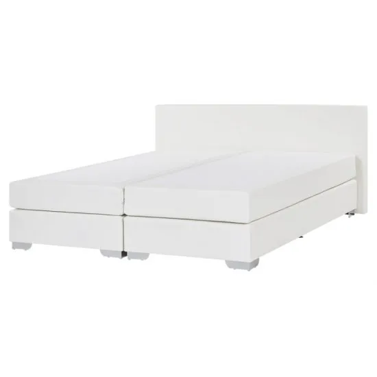 Eleganckie łożko kontynentalneNowoczesny minimalizm, elegancka biała kolorystyka i komfort łącza się w utrzymanym w nowoczesnym stylu łożku kontynentalnym PRESIDENT.Ekoskora, z ktorej zostało wykonane, jest wysokiej jakości oraz łatwa do czyszczenia.Wysokie wezgłowie składające się z trzech prostokątnych części zapewni wygodę podczas czytania ulubionej książki czy oglądania dobrego filmu.Wymiary: 170x210x90 cm.Kolor: BiałyMateriał: Skora ekologiczna. Nowoczesne wnętrzaŁożko tapicerowane skorą ekologiczną. Wysokie wezgłowie łożka. Styl nowoczesny. Łatwy montaż. Odpowiednie materace: 160x200 cm. Solidne łożko Stabilne, wysokie wezgłowie.Trzykomorowy zagłowek złożony z trzech prostokątnych części to niebanalna inspiracja do stworzenia pokoju w nowoczesnym stylu. Skora ekologiczna w kolorze białym. Miękka w dotyku tapicerka, przyjemna dla skory. Solidne łożko kontynentalne wykonane jest z solidnych materiałow.Dzięki temu masz gwarancję, że ten mebel zostanie z tobą na długi czas.Łożko kontynentalne, z myślą o nowoczesnych wnętrzach Łożko kontynentalne President zostało stworzone w modernistycznym stylu z myślą o zastosowaniu go w nowoczesnych aranżacjach sypialni.Jest całe obite delikatną w dotyku, wysokiej jakości skory ekologicznej w białym kolorze. Długość materaca 200 cmgłębokość 210 cmKolor BiałyMateriał skora ekologicznaModel PresidentSzerokość 170 cmSzerokość materaca 160 cmWysokość 90 cm
