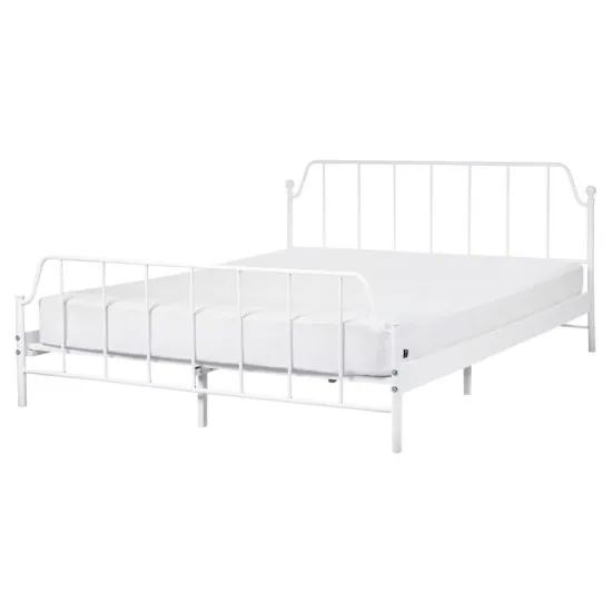 Elegancki styl łożka.Łożko Mauressac zachwyca swoim klasycznym i romantycznym designem. Delikatnie zakrzywione linie metalowej ramy tworzą elegancki wygląd, ktory doskonale pasuje do sypialni urządzonych w klasycznym lub romantycznym stylu. Doskonały wybor dla osob ceniących klasyczny i romantyczny styl wnętrz. Solidna konstrukcja Wykonane z metalu, łożko Mauressac gwarantuje trwałość i stabilność na wiele lat. Solidna konstrukcja zapewnia bezpieczny i komfortowy sen, a eleganckie zakrzywienia dodają lekkości i estetyki.Wymiary dopasowane dla Twojej wygody Łożko Maureassac ma wymiary zewnętrzne 206 cm x 164 cm i jest przystosowane do materaca o wymiarach 160 cm x 200 cm. Wysokość wezgłowia wynosi 94 cm, natomiast wysokość stelaża od podłogi to 28 cm, co zapewnia wygodny dostęp i komfort użytkowania. Stworz przytulną i elegancką atmosferę w swojej sypialni z łożkiem Mauressac. Długość materaca 200 cmgłębokość 206 cmKolor BiałyMateriał żelazoSzerokość 164 cmSzerokość materaca 160 cmWysokość stelaża 28 cmWysokość wezgłowia 94 cm