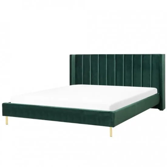 Łożko welurowe 180 x 200 cm zielone VILLETTEStylowe łożko, ktore pomoże stworzyć przytulną atmosferę we wnętrzu sypialni. Wysokie wezgłowie zostało starannie wykonane z miękkiego weluru i ozdobione przeszyciami w geometryczny wzor. Łożko posiada zintegrowany stelaż z listew giętych oraz metalowe nogi pomalowane na czarno.kolor: zielonymateriał: welurwysokość: 115 cm Cechy produktuŁożko welurowe VILLETTE w kolorze zielonym to stylowy i elegancki mebel, ktory doskonale wpasuje się w rożne aranżacje wnętrz. Wykonane jest z miękkiego w dotyku weluru, co dodaje mu luksusowego charakteru. Wysokie wezgłowie łożka jest ozdobione przeszyciami w geometryczny wzor, co nadaje mu designerskiego wyglądu. Nogi łożka wykonane są z metalu pomalowanego na czarno, co dodaje mu nowoczesności i industrialnego stylu. Łożko posiada zintegrowany stelaż, ktory zapewnia odpowiednie podparcie dla materaca i gwarantuje komfortowy sen. głębokość 222 cmKolor zielonyMateriał WelurMateriał nog MetalModel VilletteSzerokość 193 cmTyp stelaża listwy gięteWysokość 115 cm