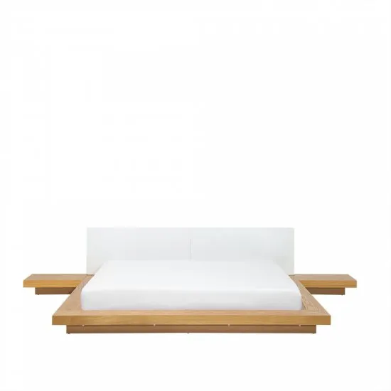 Niezwykle wygodne łożko wodne to nie tylko staranne wykonanie, ale rownież najlepsza jakość wraz z idealnym designem. Wysokiej jakości, komfortowe oraz eleganckie łożko w japońskim stylu wprowadzi niepowtarzalny nastroj w każdej sypialni. Łożko w kolorze jasnego drewna orzechowego posiada wymiary 232 x 343 x 16 cm oraz 232 x 223 x 16 cm bez stolikow nocnych. Obydwa stoliki nocne dopełniają design łożka oraz mierzą 46x60 cm. Istnieje rownież możliwość odstawienia stolikow. Naturalne drewno orzechowe harmonizuje z białą skorą ekologiczną na zagłowkach. Dla jak najlepszej wygody łożko wyposażone jest w wytrzymały stelaż. Nasz elegancki model gwarantuje błogi i spokojny sen.głębokość 232 cmKolor BrązowyMateriał Drewno orzechowe skora ekologiczna fornirowana płyta MDFSzerokość 343 cmWysokość 66 cm