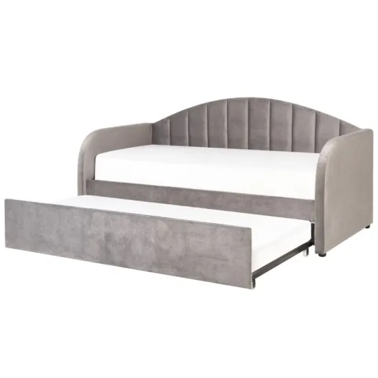 Nowoczesne i eleganckie łożko welurowePoszukujesz łożka, ktore łączy w sobie elegancję, funkcjonalność i komfort? Nasze wysuwane łożko welurowe w kolorze szarym to idealne rozwiązanie dla Ciebie i Twojego wnętrza!Obicie łożka wykonane jest z wysokiej jakości weluru, ktory nie tylko dodaje elegancji, ale także jest miękki i przyjemny w dotyku. Każda noc spędzona na tym łożku to gwarancja komfortu i relaksu. Łożko posiada opcję wysuwania, co czyni je niezwykle praktycznym meblem, idealnym do mniejszych pomieszczeń. Wysuwana część może służyć jako dodatkowe miejsce do spania lub relaksu. Elegancki designŁożko zachwyca swoim nowoczesnym i eleganckim wyglądem. Prosty, minimalistyczny design w połączeniu z klasycznym szarym kolorem sprawia, że łożko doskonale wpasuje się w każde wnętrze, dodając mu szyku.Idealne do rożnych wnętrzDzięki swojemu uniwersalnemu designowi, łożko doskonale pasuje zarowno do nowoczesnych, jak i klasycznych wnętrz. Może stanowić centralny punkt sypialni, pokoju gościnnego czy nawet salonu. Komfort i styl w jednymDzięki połączeniu eleganckiego wyglądu i przemyślanej funkcjonalności, nasze łożko zapewni Ci nie tylko komfortowy sen, ale także będzie stylowym elementem wystroju Twojego wnętrza. Wysokie, miękkie wezgłowie zapewnia wygodę podczas czytania książki czy oglądania ulubionego serialu. Solidna konstrukcja łożka gwarantuje trwałość i stabilność na lata. Łożko wysuwane welurowe to doskonałe połączenie elegancji, funkcjonalności i komfortu. Niezależnie od tego, czy szukasz łożka do sypialni, pokoju gościnnego czy salonu, to rozwiązanie spełni wszystkie Twoje oczekiwania. Długość spania 200 cmgłębokość 217 cmKolor SzaryMateriał WelurModel EyburieSzerokość 99 cmSzerokość spania 90 cmWysokość 102 cm