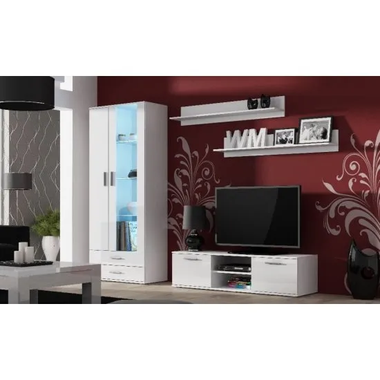 Simple meblościanka w kolorze śnieżnej bieli to pierwszy krok do odmiany Twojego mieszkania - rozjaśni wnętrze oraz nada mu niepowtarzalnej świeżości. Mebel ten to synonim funkcjonalnie urządzonego pokoju dziennego. Posiada aż 4 elementy, ktore pomogą w organizacji rzeczy, ktore na co dzień trzyma się w salonie – filmy, książki, zabawki dziecka, pamiątki rodzinne i inne. Cały zestaw wykonany jest z wysokiej jakości płyt MDF (fronty) oraz laminowanej (korpusy). Nie ulega wątpliwości, że biała Simple meblościanka zaspokoi oczekiwania nawet najbardziej wymagających osob. Właściciele niewielkich mieszkań na pewno będą zadowoleni ze prezentowanego produktu, ponieważ meble o jasnej kolorystyce mają tę własność, że optycznie powiększają wnętrze.