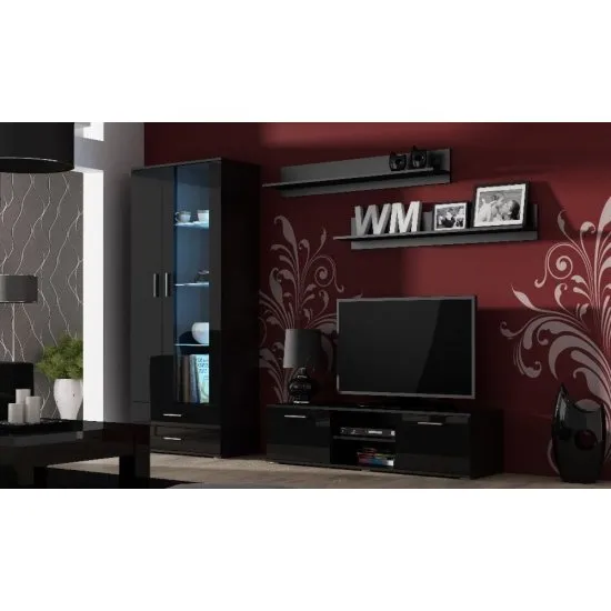 Meblościanka o mocnym, niezwykle charakternym wyrazie. Mebel ten wprowadzi do Twojego mieszkania namiastkę tajemniczości i zmysłowości. Simple meblościanka stanowi komplet złożony z czterech elementow – futryny, szafki RTV oraz dwoch wiszących połek. Dzięki grze faktur – błyszczące fronty oraz matowe korpusy, Simple meblościanka skutecznie odrożnia się od innych, dostępnych na rynku produktow tego typu. Dodatkowym czynnikiem, ktory dodaje im oryginalności jest odważna kolorystyka – obok czarnych mebli nikt nie przejdzie obojętnie. Pokoj dzienny wyposażony w Simple meblościankę będzie wyznacznikiem wnętrzarskiego stylu wśrod Twoich znajomych. Komplet jest idealnym rozwiązaniem do dużych pokoi typu studio, jak rownież mniejszych, kameralnych salonikow.