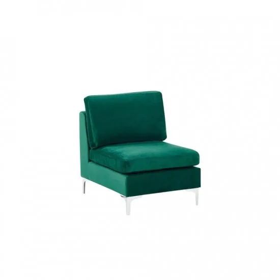 Moduł 1-osobowy Modułowy, zielony fotel jednoosobowy jest tapicerowany miękką i stylową tkaniną welurową, co nadaje mu elegancki wygląd. Jego prosta forma, bez podłokietnikow, wprowadza nowoczesny i minimalistyczny design do wnętrza.Fotel został zaprojektowany z myślą o maksymalnym komforcie użytkowania. Jego miękkie poduszki siedziskowe i wygodne oparcie zapewniają doskonałe wsparcie i relaks podczas odpoczynku. Głęboki zielony kolor dodaje meblowi wyrazistości i sprawia, że staje się on przyciągającym wzrok elementem. Fotel ten doskonale sprawdzi się w rożnych ustawieniach wnętrz, zarowno nowoczesnych, jak i klasycznych. Może być wykorzystywany jako samodzielny element wypoczynkowy lub w połączeniu z innymi modułami, tworząc większą sofę lub narożnik. To doskonały wybor do salonu, pokoju dziennego czy też przestrzeni biurowej, dodając zarowno wygodę, jak i styl. CECHY PRODUKTUMateriał: 100% poliesterNożki: drewno brzozoweKolor: zielonyNowoczesny designObszerny kształtMiękka, gruba poduszka siedziskowaProsty montażWysokość siedzenia: 46 cmSzerokość siedzenia: 70 cmGłębokość siedzenia: 57 cmKolekcja: EvjaWnętrze: do salonuStyl: nowoczesny, minimalistyczny głębokość 85 cmGłębokość siedzenia 57 cmKolekcja EvjaKolor zielonyMateriał poliester WelurMateriał nog drewno brzozoweMontaż prostyStyl nowoczesny minimalistycznySzerokość 85 cmSzerokość siedzenia 70 cmWysokość 84 cmWysokość siedzenia 46 cm