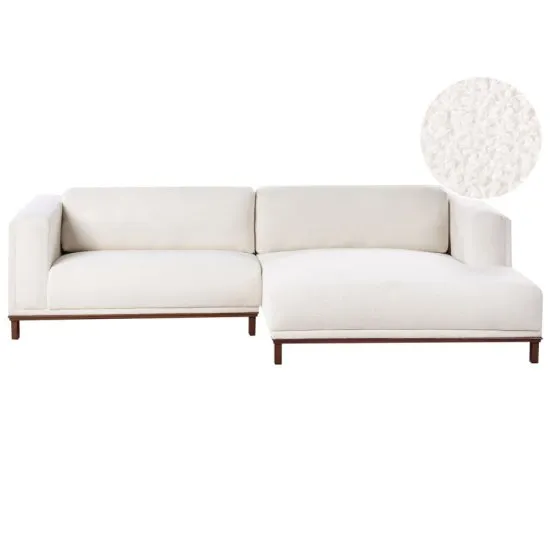 Stworz przytulną atmosferę w salonie dzięki temu stylowemu narożnikowi. Obity przyjemnym w dotyku materiałem boucle, posiada miękkie, wygodne poduszki oraz oparcie, a jej drewniane nogi nie tylko zapewniają wytrzymałość oraz stabilność, ale także dodają uroku. Ten mebel idealnie komponuje się z wystrojem zarowno nowoczesnym, jak i tradycyjnym.głębokość 155 cmKolor Złamana bielKształt Litera LLiczba osob 4Materiał boucleMateriał nog DrewnoStrona LewostronnySzerokość 310 cmWysokość 84 cm