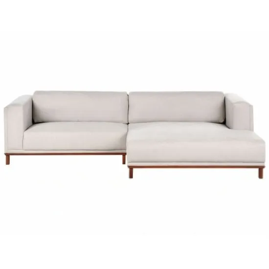 Stworz przytulną atmosferę w salonie dzięki temu stylowemu narożnikowi. Obity wytrzymałym materiałem odpornym na wodę, posiada miękkie, wygodne poduszki oraz oparcie, a jego drewniane nogi nie tylko zapewniają wytrzymałość oraz stabilność, ale także dodają uroku. Ten mebel idealnie komponuje się z wystrojem zarowno nowoczesnym, jak i tradycyjnym.głębokość 155 cmKolor beżowyKształt Litera LMateriał tkaninaMateriał nog DrewnoModel VengPojemność 4 mlSzerokość 310 cmUkład LewostronnyWysokość 84 cm