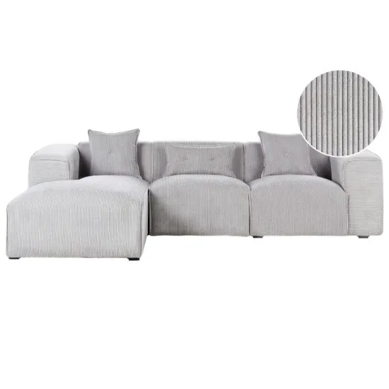 Narożnik DOLVA Sztruksowy Jasnoszary - Komfort i Styl dla 3 Osob Elegancja i Funkcjonalność w JednymOdkryj niezwykły komfort i elegancję z narożnikiem DOLVA, idealnym dla trzech osob. Tapicerowany miękkim sztruksem w jasnoszarym odcieniu, ten prawostronny narożnik doskonale wkomponuje się zarowno w nowoczesne, jak i klasyczne wnętrza. Jego solidna, drewniana rama zapewnia niezawodną stabilność na lata, a miękkie wypełnienie gwarantuje niezrownany komfort siedzenia, zapraszając do relaksu po długim dniu. Konstrukcja o wymiarach 294 cm długości, 170 cm szerokości i 72 cm wysokości, z głębokością siedziska zapewniającą optymalne podparcie, sprawia, że narożnik jest zarowno przestronny, jak i wygodny. Przemyślane Detale i Wygoda UżytkowaniaNarożnik DOLVA wyrożnia się nie tylko stylem, ale i praktycznymi rozwiązaniami. Powłoczki poduszek są łatwe do zdjęcia i czyszczenia, co znacząco ułatwia utrzymanie mebla w idealnym stanie. Elegancki design narożnika jest podkreślony przez trzy poduszki dekoracyjne z guzikami, ktore dodają kanapie przytulnego i wyjątkowego charakteru. To idealne połączenie funkcjonalności i estetyki.Głowny materiał: SztruksKolor: JasnoszaryTyp: PrawostronnyWysokość: 72 cmSzerokość: 294 cmGłębokość: 170 cm Nowoczesny Design i TrwałośćNarożnik DOLVA został zaprojektowany z myślą o trwałości i estetyce, oferując połączenie nowoczesnej linii z klasycznym sztruksowym wykończeniem. Wytrzymała tapicerka jest odporna na codzienne użytkowanie, a jednocześnie miękka i przyjemna w dotyku. Ten mebel to inwestycja w komfort i styl, ktory będzie centrum Twojego salonu przez wiele lat, zapewniając idealne miejsce do wypoczynku i spotkań. Nie czekaj, zamow już teraz i ciesz się wyjątkową jakością! Długość 294 cmgłębokość 170 cmKolor jasnoszaryKształt Litera LLiczba osob 3Materiał drewno SztruksPokrowce zdejmowane TakSzerokość 170 cmUkład PrawostronnyWysokość 72 cm