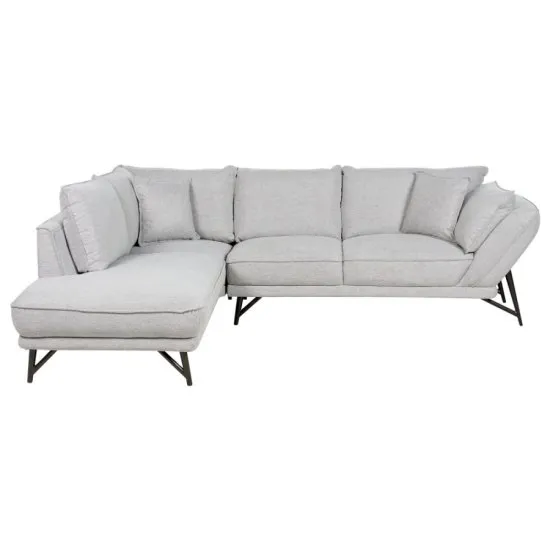 Narożnik Elga Narożnik Elga to doskonałe połączenie stylu i wygody, tworząc idealne miejsce do wypoczynku w Twoim salonie. Jego nowoczesny design i subtelny, szary odcień sprawiają, że doskonale komponuje się z rożnymi wnętrzami, dodając im elegancji i przytulności. Wysokie oparcia i miękkie poduchy na siedzisku gwarantują wyjątkowy komfort podczas relaksu. Całość wsparta jest na delikatnych, metalowych nożkach, ktore dodają lekkości i nowoczesnego charakteru. Uniwersalny narożnik do salonu Dzięki swojej uniwersalnej stylistyce, Narożnik Elga świetnie wpasowuje się w rożnorodne aranżacje - od minimalistycznych po bardziej klasyczne. Ten narożnik nie tylko zachęca do relaksu, ale rownież staje się stylowym elementem wystroju wnętrza, dodając mu wyrafinowanego charakteru.Narożnik Elga to nie tylko mebel, to zaproszenie do chwili wytchnienia w komfortowym i stylowym otoczeniu. Dlaczego warto wybrać narożnik Elga?Narożnik Elga to nie tylko mebel, to zaproszenie do komfortowego wypoczynku w stylowym otoczeniu. Jego staranne wykonanie, estetyka i wygoda, czynią go idealnym wyborem dla każdego, kto pragnie stworzyć przytulny i elegancki kącik wypoczynkowy w swoim salonie.Wybierając Elga, inwestujesz w mebel, ktory zachwyci zarowno Ciebie, jak i Twoich gości, stając się ulubionym miejscem do relaksu i spotkań towarzyskich. Cechy narożnika:Nowoczesny design, Narożnik Elga zachwyca swoim nowoczesnym wyglądem, ktory doskonale wpasowuje się w rożnorodne style wnętrz.wysokość: 80 cmJasnoszary kolor dodaje lekkości i elegancji, czyniąc narożnik uniwersalnym elementem wystroju.Narożnik 265x220 cmWysokie oparcia i miękkie poduchy zapewniają nie tylko wygodę, ale także przytulność, zachęcając do długiego relaksu. głębokość 220 cmKolor jasnoszaryKonfiguracja prawostronnyKształt Litera LMateriał lenMateriał nog MetalSzerokość 265 cmWysokość 80 cm