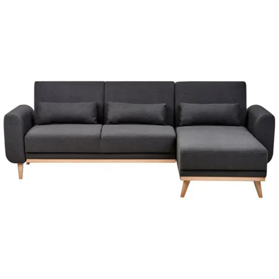 Solidnie wykonany narożnik. Nowoczesny narożnik Ollsta sprawdzi się we wnętrzu urządzonym w stylu minimalistycznym. Wyposażony w miękkie poduszki na oparciu oraz obszernym siedzisku, oferuje komfortowe miejsce dla trzech osob do wypoczynku. Lewostronny narożnik wykończono czarną, gładką tkaniną. Proste nogi wykonane z metalu podkreślają minimalistyczny styl mebla. Cechy produktu:narożnik lewostronnyposiada miękkie poduszki na oparciuprosty designwykonany w stylu minimalistycznym Narożnik Ollsta - nowoczesne wnętrza muszą mieć w nim towarzysza!Narożnik Ollsta to doskonały wybor do nowoczesnych i minimalistycznych wnętrz. Jego proste linie i elegancki design dobrze komponują się z rożnymi stylami, wprowadzając do pomieszczenia atmosferę spokoju i elegancji. Czarna tkanina tapicerska dodaje narożnikowi Ollsta elegancji i uniwersalności, dzięki czemu łatwo wpasuje się w rożnorodne aranżacje wnętrz, od nowoczesnych po klasyczne. Narożnik Ollsta to nie tylko stylowy dodatek do wnętrza, ale także funkcjonalne miejsce wypoczynku dla całej rodziny. głębokość 147 cmKolor czarnyKonfiguracja LewostronnyKształt Litera LLiczba osob 3Materiał poliesterMateriał nog MetalStyl minimalistycznySzerokość 258 cmWysokość 88 cm