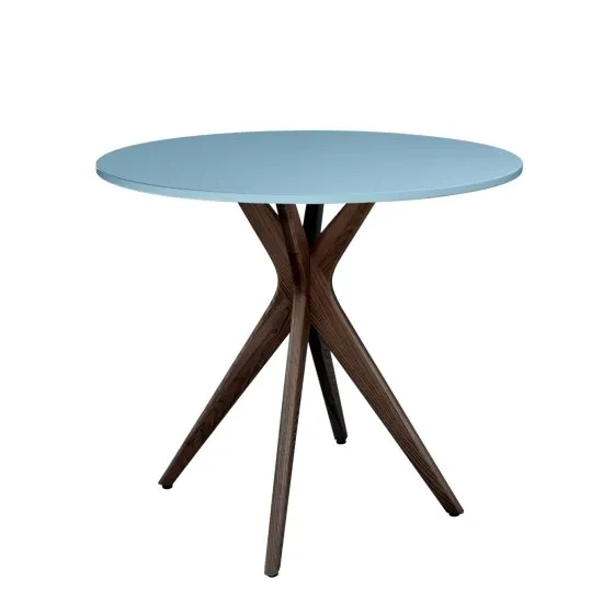 Okrągły Stół Jadalniany JUBI śr. 70cm Delikatny Niebieski | Nogi Orzech