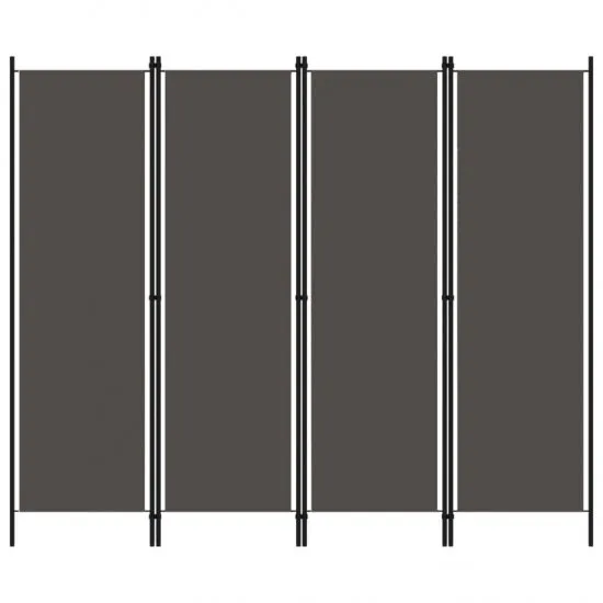 Nasz wolnostojący, praktyczny, parawan 4-skrzydłowy sprawdzi się jako przegroda, osłona zapewniająca prywatność lub jako dekoracja. Oferuje on intymność w sypialni lub wygrodzenie części pokoju. Wykonany z malowanej proszkowo, żelaznej ramy oraz paneli z tkaniny parawan można z łatwością złożyć, gdy nie jest używany. Uwaga: tkanina nie blokuje światła całkowicie.Kolor: antracytowy Materiał: tkanina (100% poliester), malowane proszkowo żelazo Wymiary całkowite: 200 x 180 cm (szer. x wys.) Wymiary panelu z tkaniny (każdego): 46,5 x 175 cm (szer. x wys.) 4 panele Wymagany montaż: tak Kolor antracytowyLiczba paneli 4Materiał malowane proszkowo żelazo tkanina (100% poliester)Montaż wymagany TakSzerokość 200 cmSzerokość panelu 46,5 cmWaga 3,59 kgWysokość 180 cmWysokość panelu 175 cm