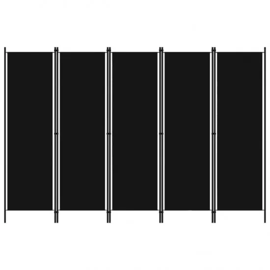 Nasz wolnostojący, praktyczny, parawan 5-skrzydłowy sprawdzi się jako przegroda, osłona zapewniająca prywatność lub jako dekoracja. Oferuje on intymność w sypialni lub wygrodzenie części pokoju. Wykonany z malowanej proszkowo, żelaznej ramy oraz paneli z tkaniny parawan można z łatwością złożyć, gdy nie jest używany. Uwaga: tkanina nie blokuje światła całkowicie.Kolor: czarny Materiał: tkanina (100% poliester), malowane proszkowo żelazo Wymiary całkowite: 250 x 180 cm (szer. x wys.) Wymiary panelu z tkaniny (każdego): 46,5 x 175 cm (szer. x wys.) 5-panelowy Wymagany montaż: tak Kolor czarnyLiczba paneli 5Materiał malowane proszkowo żelazo tkanina (100% poliester)Montaż wymagany TakSzerokość 250 cmSzerokość panelu 46,5 cmWaga 4,47 kgWysokość 180 cmWysokość panelu 175 cm