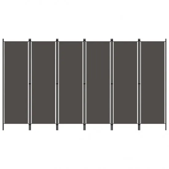 Nasz wolnostojący, praktyczny, parawan 6-skrzydłowy sprawdzi się jako przegroda, osłona zapewniająca prywatność lub jako dekoracja. Oferuje on intymność w sypialni lub wygrodzenie części pokoju. Wykonany z malowanej proszkowo, żelaznej ramy oraz paneli z tkaniny parawan można z łatwością złożyć, gdy nie jest używany. Uwaga: tkanina nie blokuje światła całkowicie.Kolor: antracytowy Materiał: tkanina (100% poliester), malowane proszkowo żelazo Wymiary całkowite: 300 x 180 cm (szer. x wys.) Wymiary panelu z tkaniny (każdego): 46,5 x 175 cm (szer. x wys.) Z 6 panelami Wymagany montaż: tak Kolor antracytowyLiczba paneli 6Materiał żelazo poliesterSzerokość 300 cmSzerokość panelu 46,5 cmWaga 5,36 kgWymaga montażu 1Wysokość 180 cmWysokość panelu 175 cm