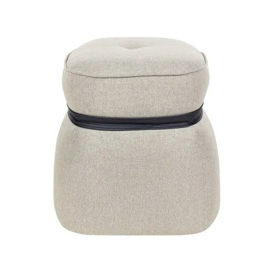 Ten nietypowy, tapicerowany puf z pewnością ożywi twoją przestrzeń codzienną nowoczesnym klimatem. Produkt jest bardzo stabilny, dzięki czemu sprawdzi się nie tylko jako dodatkowe siedzisko, ale i podnożek czy dodatkowy stolik, przez co akcesorium będzie idealnym wyborem do salonu, sypialni czy nawet domowego biura. Produkt wykonano z wytrzymałego lnu, więc nie będzie wymagać częstej pielęgnacji, a beżowy kolor pozwoli na łatwe dopasowanie do innych mebli.głębokość 45 cmKolor beżowyKształt OkrągłyMateriał Len syntetycznySzerokość 45 cmWysokość 44 cm