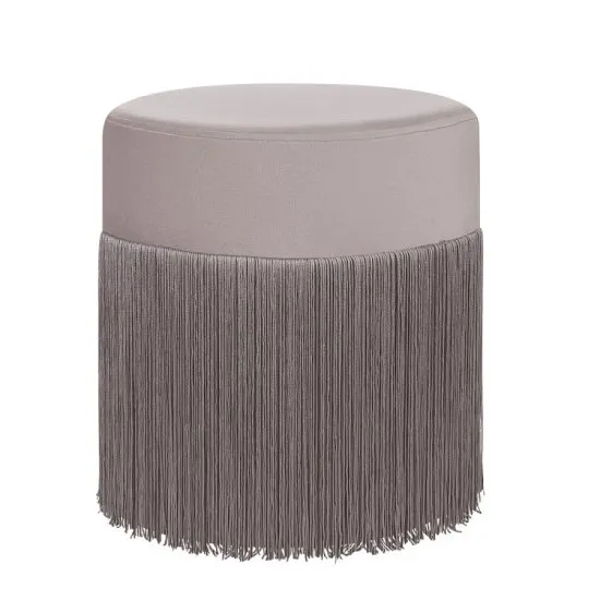 Beżowy puf z frędzlami znakomicie sprawdzi się w nowoczesnych salonach urządzonych w stylu boho. Puf VIRGINIA wykonany został z miękkiego w dotyku, beżowego materiału. Ozdobiono go długimi, stylowymi frędzlami, ktore dodają mu niespotykanego wyglądu i jeszcze większej przytulności. Pufa pełnić może funkcję wygodnego podnożka, ale rownież przydatnego podczas wizyty gości, dodatkowego siedziska. Puf z frędzlami ø 36 cm beżowy VIRGINIA