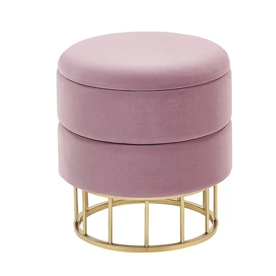 Pufa z możliwością przechowywania ELGIN. Nowoczesna pufa, wykonana została z myślą o praktycznym zastosowaniu, ktore wprowadzi do Twojego wnętrza udogodnienie, oraz modernistyczny styl. Siedzisko tapicerowane jest miękkim w dotyku welurem w delikatnym, rożowym kolorze.Wewnątrz siedziska ukryty został pojemny schowek, do ktorego w łatwy sposob otrzymasz dostęp, dzięki zdejmowanemu wieczku. Szeroki brzeg siedziska został wypełniony gąbką, dzięki czemu otrzymujemy wygodne miejsce siedzące. Podstawę pufy Elgin wieńczy złote okucie, ktore nadaje całości wyjątkowego charakteru. Dzięki niewielkim rozmiarom oraz lekkiej wadze, przeniesienie pufy w dowolne miejsce nie sprawi Ci najmniejszego problemu, a dodatkowy schowek pozwoli na szybkie uporządkowanie przestrzeni. Świetnie sprawdzi się jako dodatkowe miejsce siedzące oraz okazjonalny stolik kawowy, czy też pomocnik. Wprowadź pufę Elgin do swojego domu i ciesz się niezwykle praktycznym dodatkiem wypoczynkowym!Wymiary: średnica wynosi 37 cm42 cm wysokości głębokość 37 cmKolor rożowyMateriał WelurModel ELGINOkucie złoteSchowek TakSzerokość 37 cmŚrednica 37 cmWypełnienie gąbkaWysokość 42 cm