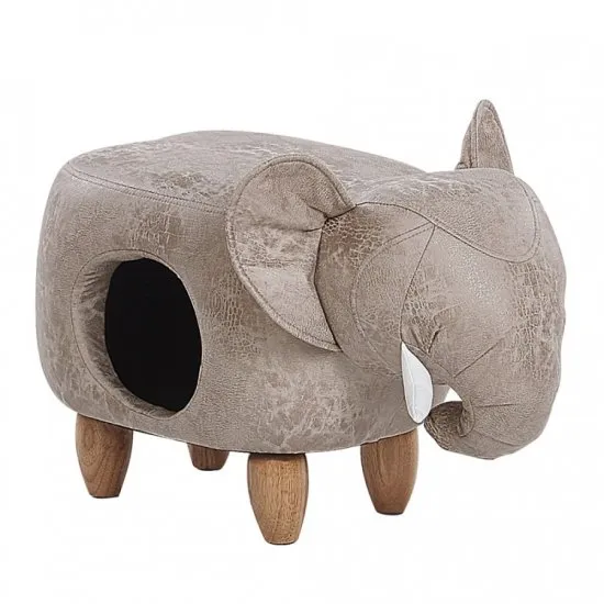 Pufa w kształcie słoniaWyjątkowa pufa w kształcie zwierzaka to doskonałe rozwiązanie do pokoju dziecięcego. Wykonana w kształcie słonia, pufa zachwyca swoim uroczym wyglądem i praktycznością. Obszycie w szarym kolorze doskonale komponuje się z rożnymi stylami wnętrz, dodając przytulności i ciepła. Duże uszy i krotka trąba dodają pufie uroku i sprawiają, że staje się ona ulubionym miejscem do siedzenia dla najmłodszych.Praktyczny schowek w pufiePufa słonik to nie tylko wygodne miejsce do siedzenia, ale rownież praktyczny schowek. Pod unoszoną pokrywą znajduje się przestrzeń, ktora doskonale sprawdzi się do przechowywania zabawek, kocykow czy innych drobiazgow. Dzięki temu pufa łączy w sobie funkcje dekoracyjne i użytkowe, pomagając utrzymać porządek w pokoju.Wytrzymałe materiałyPufa zwierzak została wykonana z wysokiej jakości materiałow, ktore zapewniają jej trwałość i wygodę. Miękkie siedzisko obszyte jest przyjemnym w dotyku materiałem, a solidne, drewniane nożki gwarantują stabilność. Pufa jest wytrzymała i bezpieczna, co sprawia, że idealnie nadaje się do codziennego użytku przez dzieci. Zobacz też inne pufy do siedzeniagłębokość 63 cmKolor SzaryKształt słońMateriał skora ekologicznaMateriał nog DrewnoPosiada schowek TakSzerokość 34 cmWysokość 38 cm