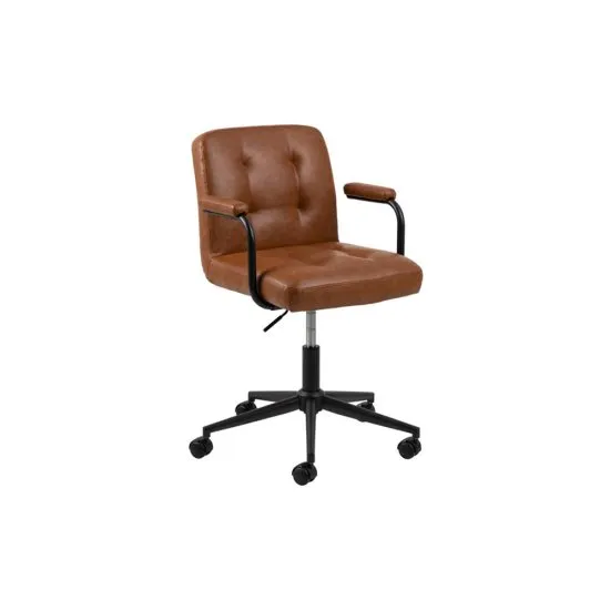 Chcesz odmienić wnętrze domowego gabinetu? Fotel biurowy z kolekcji Malilo zachwyci Cię swoją ponadczasową formą! Wnętrze Twojego domu czerpie inspiracje ze stylu retro? W takim razie fotel biurowy z kolekcji Malilo powinien Ci się spodobać. Podstawę mebla tworzy pięć kołek, dzięki ktorym łatwo i szybko przesuniesz produkt w inne miejsce. Korpus z pianki poliuretanowej będzie stabilnym podparciem dla całej Twojej sylwetki. Na pewno docenisz także stylowe czarne podłokietniki z miękkimi poduszkami, na ktorych wygodnie oprzesz ręce w trakcie pracy przy biurku. Bez względu na to, ile masz wzrostu - swobodnie wyregulujesz wysokość siedziska odpowiednią dla Ciebie. Fotel zachwyca swoją powierzchnią z tkaniny wiernie naśladującej prawdziwą skorę. Materiał wykazuje odporność na ścieranie oraz jest antypoślizgowy. Ozdobne pikowania na powierzchni obicia dodają meblowi odrobiny finezyjnego szyku. Szczegoły produktu: regulacja wysokości siedziska za pomocą dźwigni w przedziale: 47-57 cm,