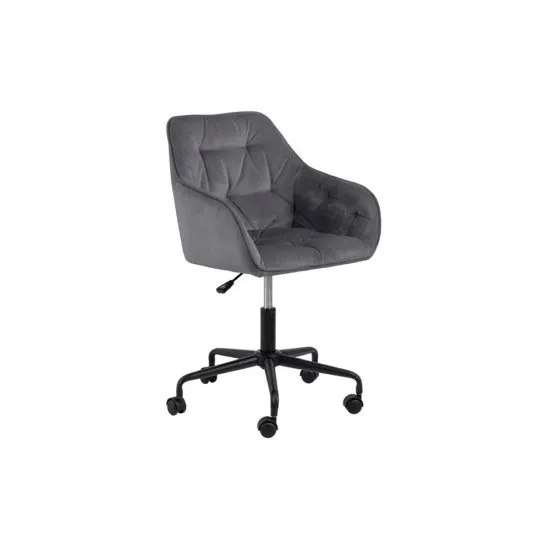 Szukasz stylowego mebla, ktory uprzyjemni Ci codzienną pracę biurową? Jeśli tak, wygodny fotel z kolekcji Dianerco jest dla Ciebie! Lubisz, kiedy w Twoim domu każdy mebel doskonale pełni swoją rolę? Jeśli tak, fotel z kolekcji Dianerco na pewno Ci się spodoba. Produkt urzeka swoją nowoczesną konstrukcją opartą na pięcioramiennej metalowej podstawie z kołkami, za pomocą ktorych łatwo przemieścisz fotel. Miękkie siedzisko i oparcie z pianki poliuretanowej wykończono subtelną i lekko połyskującą tkaniną welurową. Materiał jest odporny na ścieranie oraz nie wchłania wilgoci, przez co w prosty sposob pozbędziesz się niechcianych zabrudzeń. Praktyczna dźwignia w fotelu pozwoli Ci dostosować wysokość siedziska do Twojego wzrostu, a miękkie podłokietniki stworzą dodatkową przestrzeń dla łokci. Subtelne pikowanie na powierzchni fotela sprawi, że całość doskonale sprawdzi się we wnętrzu w stylu nowoczesnym. Szczegoły produktu: regulacja wysokości siedziska w przedziale: 46-55,5 cm, posiada