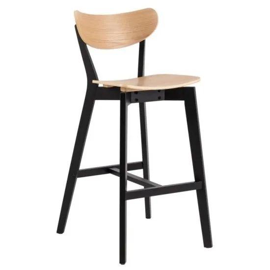 Podobają Ci się industrialne meble, ale chciałabyś, by w Twoim wnętrzu było coś więcej niż metal? Hoker Gemirro stanowi idealne połączenie przemysłowego designu z ciepłym drewnem! Hoker wyrożnia się zachwycająco minimalistyczną formą, doskonale sprawdzającą się w każdej kompozycji. Siedzisko oraz oparcie utrzymane w eleganckim odcieniu czerni zostało tutaj bowiem osadzone na czterech wysokich, lekko spłaszczonych nogach, ktore nie tylko zapewniają całości perfekcyjna stabilność, ale rownież dbają o jej odpowiednią prezencję. Dodatkowo budowa ta znacząco ułatwi włączanie produktu do wystroju wnętrza, pozwalając Ci na swobodną zabawę i eksperymenty aranżacyjne. Model Gemirro ze względu na swoj nietuzinkowy design świetnie odnajdzie się w rożnorodnych wnętrzach. Z powodzeniem wpasujesz go do loftowej jadalni, do ktorej rewelacyjnie będą pasować metalowe elementy, ale także sprawdzi się w nowoczesnym pomieszczeniu. Szczegoły produktu: nożki wykonano z drewna kauczukowego, ktore olśniewa