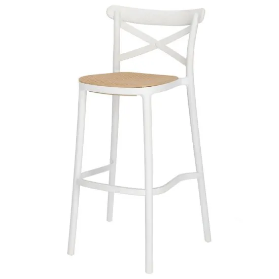 Zastanawiasz się, jak sprawić żeby jadalnia wyglądała bardziej elegancko? Pożądany efekt wizualny osiągniesz przy pomocy hokera z kolekcji Frairlo! Każdy barowy blat wymaga właściwej oprawy. Jeśli starasz się udekorować domowe wnętrze w zgodzie z klasycznymi trendami, hoker z kolekcji Frairlo jest wyborem idealnym dla Ciebie. Produkt posiada wygodne siedzisko z powierzchnią imitującą rattanową plecionkę, ktora jest obecna w trendach od dawna. Oparcie hokera urozmaica natomiast element w formie skrzyżowanych belek. Bazą dla całości są cztery proste nożki. Mebel wykonano z tworzywa sztucznego, ktore zapewnia konstrukcji wysoką odporność na zniszczenia mechaniczne oraz gładką powierzchnię. Dzięki hokerowi będziesz wygodnie celebrować wspolne chwile w towarzystwie rodziny i przyjacioł. Co więcej, mebel możesz swobodnie sztaplować. Szczegoły produktu: ilość krzeseł w zestawie: 1, wykonanie oparcia, siedziska i nożek: tworzywo sztuczne, materiał lekki, wytrzymały i estetyczny, produkt