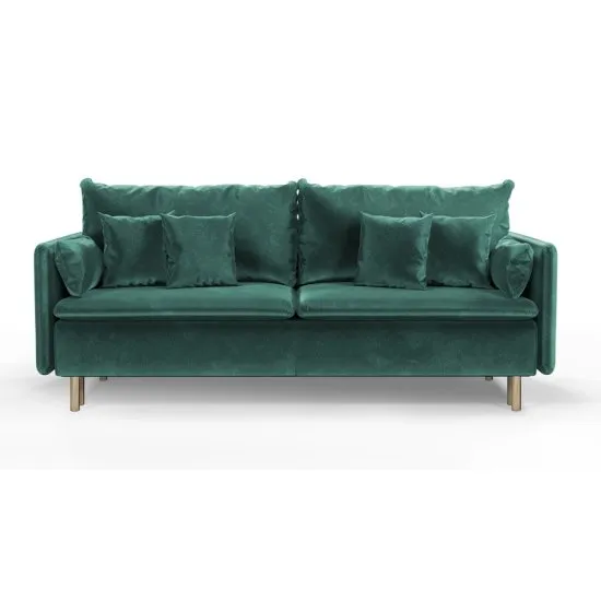 SELSEY Kanapa rozkładana trzyosobowa Gennario z pojemnikiem na złotych nogach szmaragdowa zieleń welur łatwoczyszczący
