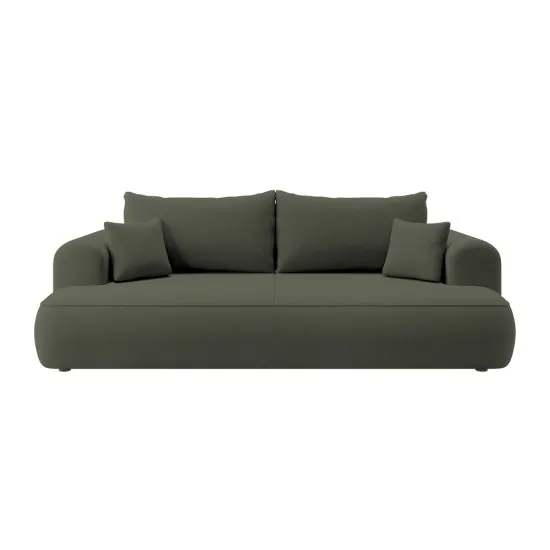 SELSEY Kanapa rozkładana trzyosobowa Ovo z pojemnikiem oliwkowa welur w tkaninie łatwoczyszczącej
