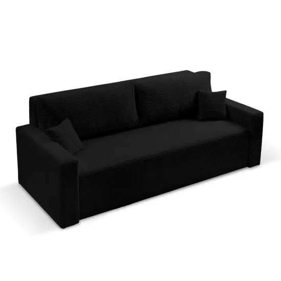 SELSEY Kanapa rozkładana trzyosobowa Peroso czarna z pojemnikiem sztruks