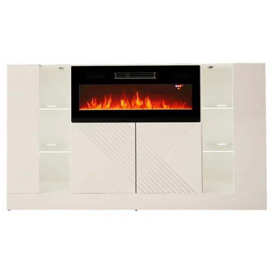SELSEY Komoda czterodrzwiowa Darica 160 cm z kominkiem elektrycznym biały mat / biały połysk