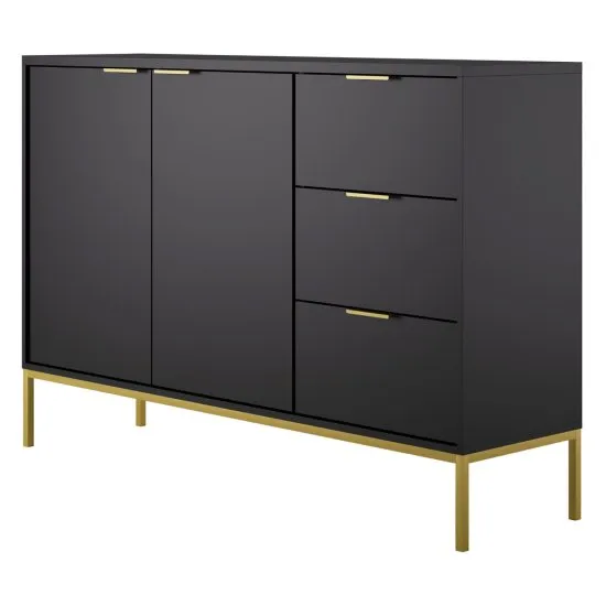 SELSEY Komoda dwudrzwiowa Diargo z trzema szufladami czarna na złotym stelażu