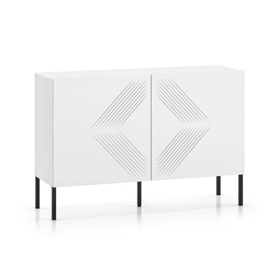 Szukasz idealnej komody do swojego wnętrza, ktora nie tylko zapewni praktyczne rozwiązanie do przechowywania, ale także będzie wyjątkowym elementem wystroju? Komoda dwudrzwiowa Nebbato o wyjątkowym designie będzie świetnie komponowała się z nowoczesnymi wnętrzami. Została wykonana z wysokiej jakości płyty MDF, ktora zapewni długotrwałe i bezproblemowe użytkowanie. Jej charakter wzbogacają solidne nogi wykonane z metalu, ktore nie tylko nadają meblowi wytrzymałość, ale rownież dodają mu industrialnego uroku. Z kolei wyrafinowany detal w postaci frezowanego wzoru na froncie dodaje wyjątkowego wyglądu całej szafce. Komoda została zaprojektowana z myślą o funkcjonalności, więc posiada cztery połki, na ktorych umieścisz rożnego rodzaju przedmioty, zależnie od Twoich potrzeb. Biały mat, zestawiony z czarnymi nożkami nadają wnętrzu subtelnego, lecz wytwornego charakteru. Ten mebel to nie tylko praktyczne rozwiązanie do przechowywania, ale także designerski element, ktory podkreśli