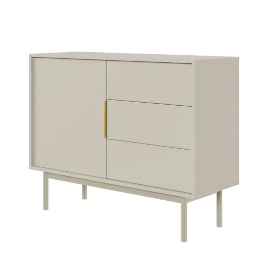 Wybierasz nowoczesne meble, ktore będą Ci służyły kilka lat? Lubisz prostotę i klasyczne formy? Wybierając kolekcję Viviaro wprowadzasz do swojego wnętrza elegancki styl oraz powiew świeżości! Komoda jednodrzwiowa Viviaro to doskonałe połączenie funkcjonalności i elegancji. Jej klasyczny kolor wraz ze złotym, podłużnym uchwytem nadaje wnętrzu subtelny i nowoczesny charakter. Wykonana z wysokiej jakości płyty laminowanej, komoda zachwyca nie tylko swoim wyglądem, ale rownież trwałością. Solidne, drewniane nogi dodają komodzie lekkości, jednocześnie podkreślając jej stabilność. Projektanci zadbali o każdy detal, tworząc mebel, ktory doskonale wpisuje się w nowoczesne aranżacje wnętrz. Dodatkowym atutem są trzy przemyślane szuflady, ktore gwarantują odpowiednią przestrzeń do przechowywania rożnorodnych przedmiotow. Dzięki funkcji cichego domyku, otwieranie i zamykanie szuflad odbywa się płynnie i bez hałasu, co sprawia, że korzystanie z komody jest nie tylko praktyczne, ale rownież